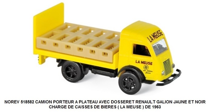 CAMION PORTEUR A PLATEAU AVEC DOSSERET RENAULT GALION JAUNE ET NOIR CHARGE DE CAISSES DE BIERES ( LA MEUSE ) DE 1963