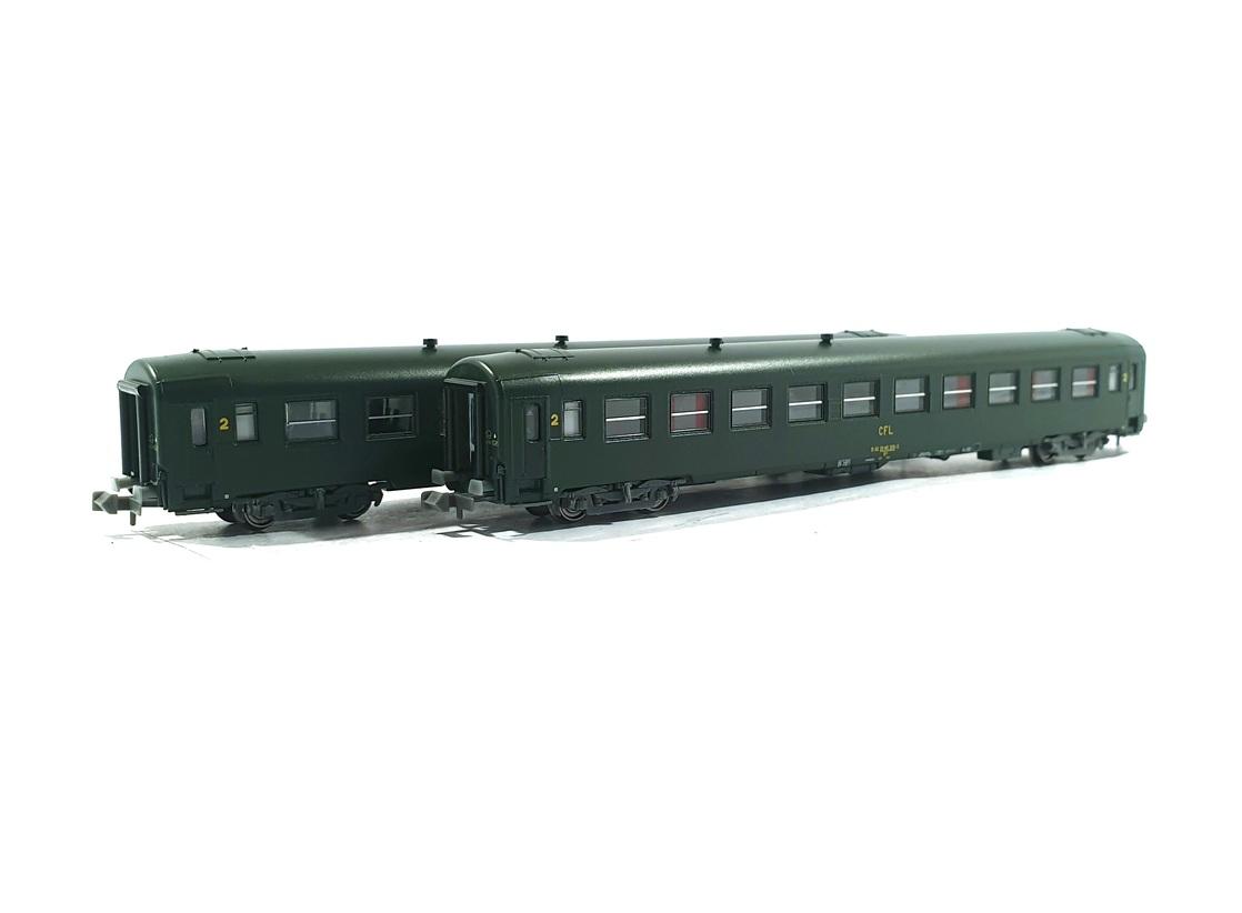 COFFRET 2 VOITURES VOYAGEURS UIC B10 VERT LOGO JAUNE CFL