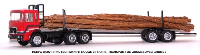 TRACTEUR MAN F8 ROUGE ET NOIRE TRANSPORT DE GRUMES AVEC GRUMES