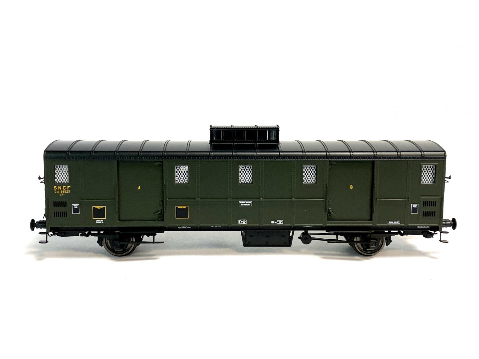 FOURGON OCEM 30 TOIT RIVETÉ NOIR, VIGIE PO, BOITES À COUSSINETS, TOULOUSE EX-PO GRILLES AUX FENÊTRES N°49523 EP.III - SNCF - PORTES OUVRANTES AVEC DÉCODEUR