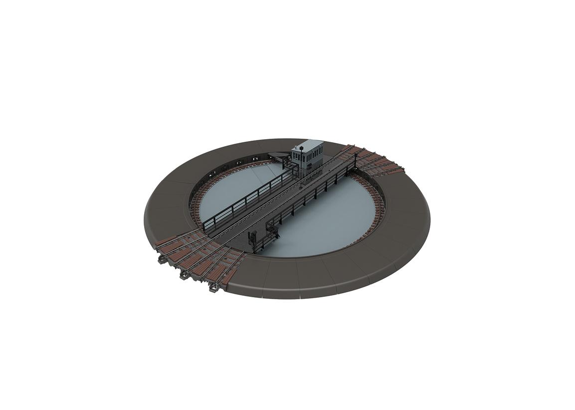 Unité de base type 23 m. Convient à la conduite conventionnelle et numérique. Platine rotative télécommandée avec moteur intégré. Commande exclusivement numérique avec Mobile Station 2 et Central Station 2 et 3 (non incluses). Commande particulièrement pratique avec les stations centrales 2 et 3 au moyen d'une présélection de piste (après une mise à jour réussie) ou de divers panneaux numériques au format numérique DCC. Fonction: Tourner le puits droite / gauche pour une installation en retrait dans le système. 6 connexions de piste pour les pistes C pour insertion à n’importe quel endroit. Angle de départ dans l'inclinaison du C-track de 12 °. Extensible à max. 30 liaisons de voie par incréments de 12 ° avec extension 66871. Alimentation de traction des liaisons de voie par la plateforme tournante. Changement de polarité programmable. Diamètre extérieur, chacun avec un écart de 382 mm. Diamètre de la fosse sans laisser de revêtements 278 mm. Longueur de la scène 263 mm. Convient au ringhouse 72886. Diverses fonctions sonores commutables. Maison du gardien de la plaque tournante et lumière extérieure avec LED illuminée, commutable.