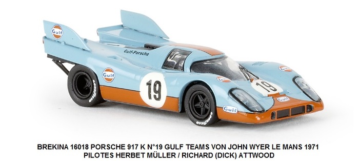 PORSCHE 917 K N°19 GULF TEAMS VON JOHN WYER LE MANS 1971 PILOTES HERBET MÜLLER / RICHARD (DICK) ATTWOOD