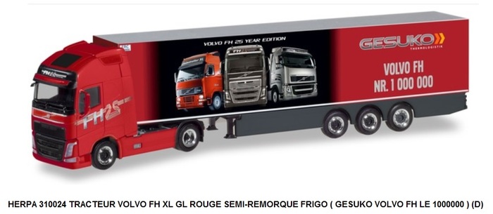 TRACTEUR VOLVO FH XL GL ROUGE SEMI-REMORQUE FRIGO ( GESUKO VOLVO FH LE 1000000 ) (D)