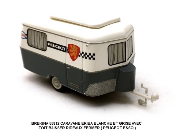 CARAVANE ERIBA BLANCHE ET GRISE AVEC TOIT BAISSER RIDEAUX FERMER ( PEUGEOT ESSO )