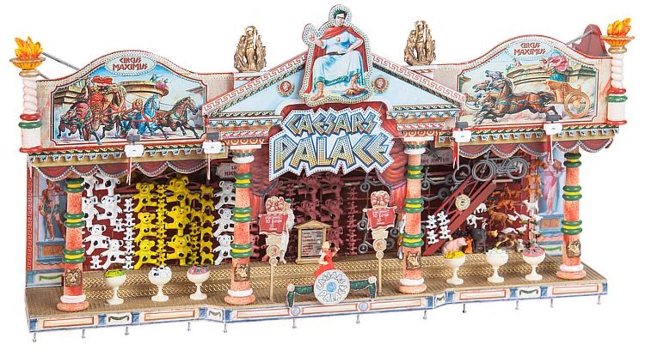 Du luxe pure et des numéros gagnants en abondance, c’est ce que les aventuriers vont trouver dans le »Caesars Palace«, modèle stationnaire d’une ancienne loterie foraine que l’Atelier de Publicité Appliquée (»afaw«) a élaboré en hommage à ce casino légendaire de Las Vegas, avec motifs et éléments de style antiques.