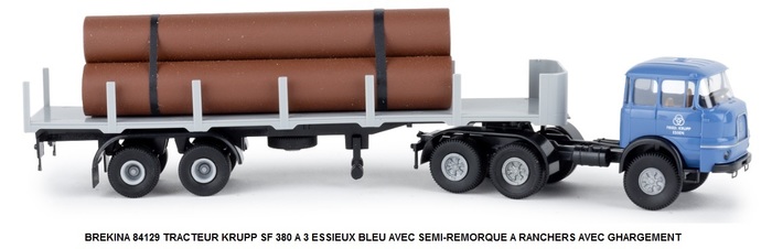 TRACTEUR KRUPP SF 380 A 3 ESSIEUX BLEU AVEC SEMI-REMORQUE A RANCHERS AVEC GHARGEMENT