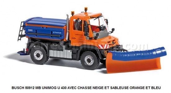 MB UNIMOG U 430 AVEC CHASSE NEIGE ET SABLEUSE ORANGE ET BLEU