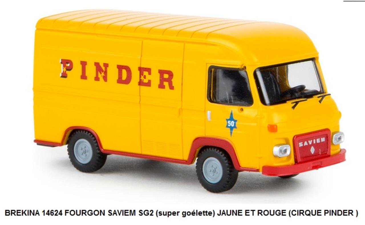 BREKINA 14624 FOURGON SAVIEM SG2 (super goélette) JAUNE ET ROUGE (CIRQUE PINDER )