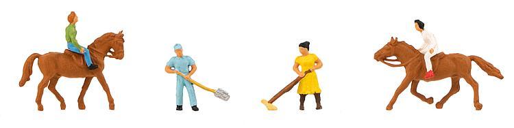ENSEMBLE DE FIGURINES PERSONNEL D ECURIE ET CAVALIER (X4)