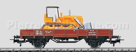 WAGON PLAT A ESSIEUX DE LA DB AVEC UN BULLDOZER