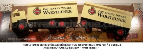 SÉRIE SPÉCIALE BIÈRE ÉDITION 1994 PORTEUR MAN F90 À 3 ESSIEUX AVEC REMORQUE À 2 ESSIEUX \'\' WARSTEINER \'\'