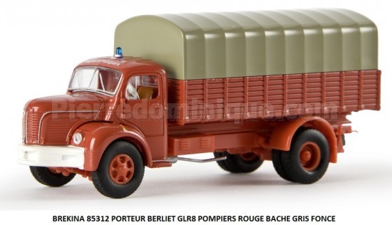 PORTEUR BERLIET GLR8 POMPIERS ROUGE BACHE GRIS FONCE