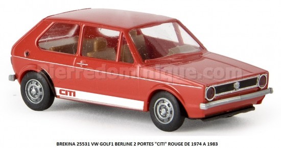 VW GOLF1 BERLINE 2 PORTES "CITI" ROUGE DE 1974 A 1983