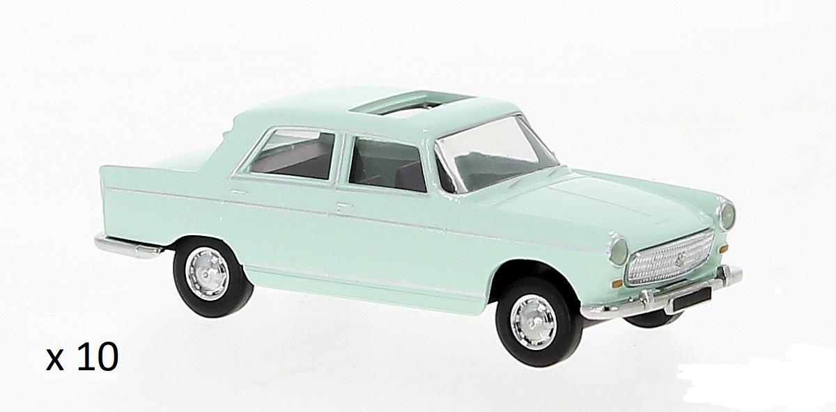 LOT DE 10 PEUGEOT 404 AVEC TOIT OUVERT VERT PALE INTERIEUR NOIRE