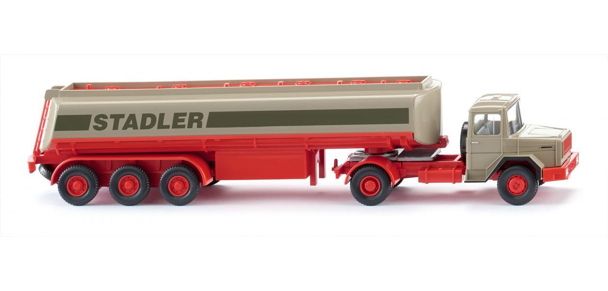 TRACTEUR MAGIRUS GRIS CHASSI ROUGE 2 ESSIEUX SEMI-REMORQUE CITERNE STADLER