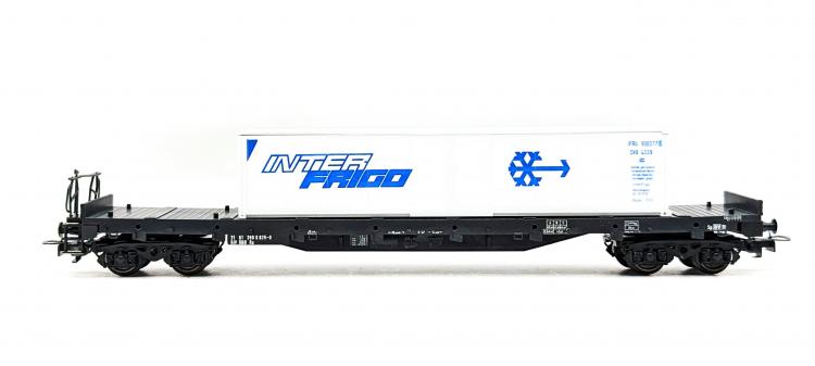 WAGON PLAT TRANSPORT DE CONTENEUR INTERFRIGO OBB - AVEC RANCHER