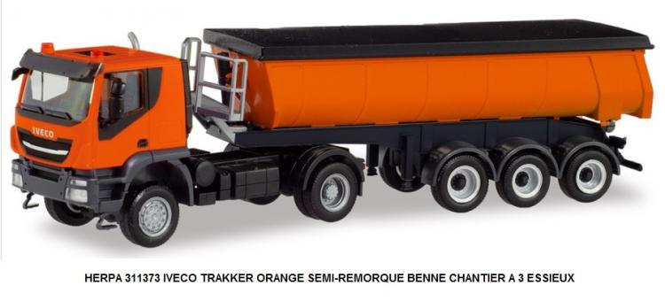 IVECO TRAKKER ORANGE SEMI-REMORQUE BENNE CHANTIER A 3 ESSIEUX