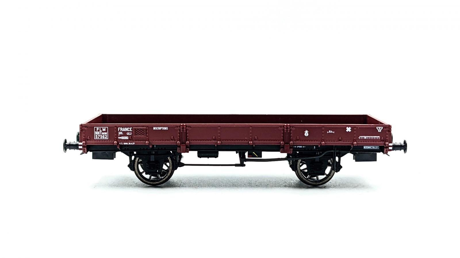 SET DE 2 WAGONS PLATS OCEM 29 GRIS NNTOUW 57789 ET NNTOUW 58169 FREIN À LEVIER, ROUES RAYONS PLM