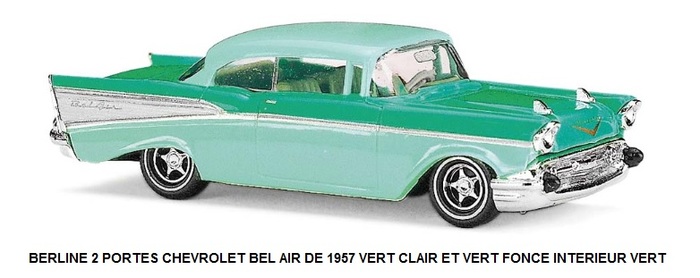 BERLINE 2 PORTES CHEVROLET BEL AIR DE 1957 VERT CLAIR ET VERT FONCE INTERIEUR VERT