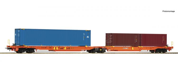 DOUBLE WAGON PORTE CONTENEURS WASCOSA + 2 CONTENEURS -