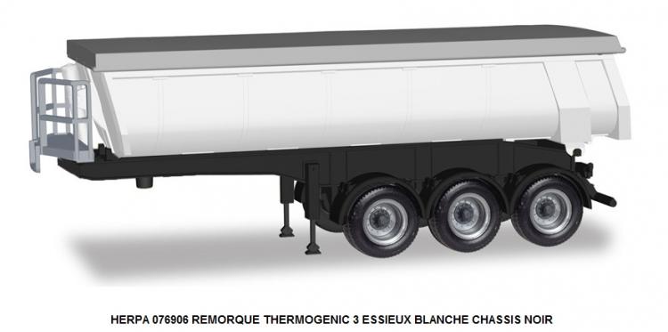 REMORQUE THERMOGENIC 3 ESSIEUX BLANCHE CHASSIS NOIR