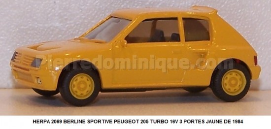 BERLINE SPORTIVE PEUGEOT 205 TURBO 16V 3 PORTES JAUNE DE 1984