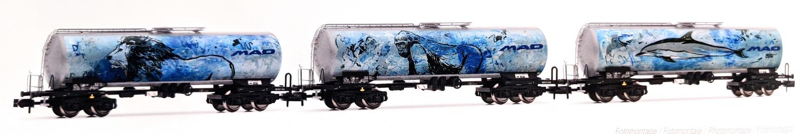 *PROMOS* - COFFRET DE 3 WAGONS CITERNES A 4 ESSIEUX ZACNS MAD D-BSAS