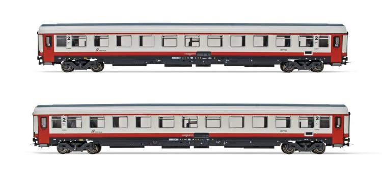 COFFRET DE 2 VOITURES VOYAGEURS UIC-Z1 PROGETTO 901 2°CL - LIVREE FRECCIABIANCA AVEC PORTE ROUGE FS