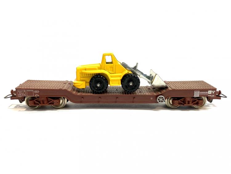 WAGON PLAT AVEC BULLDOZER JAUNE SNCF