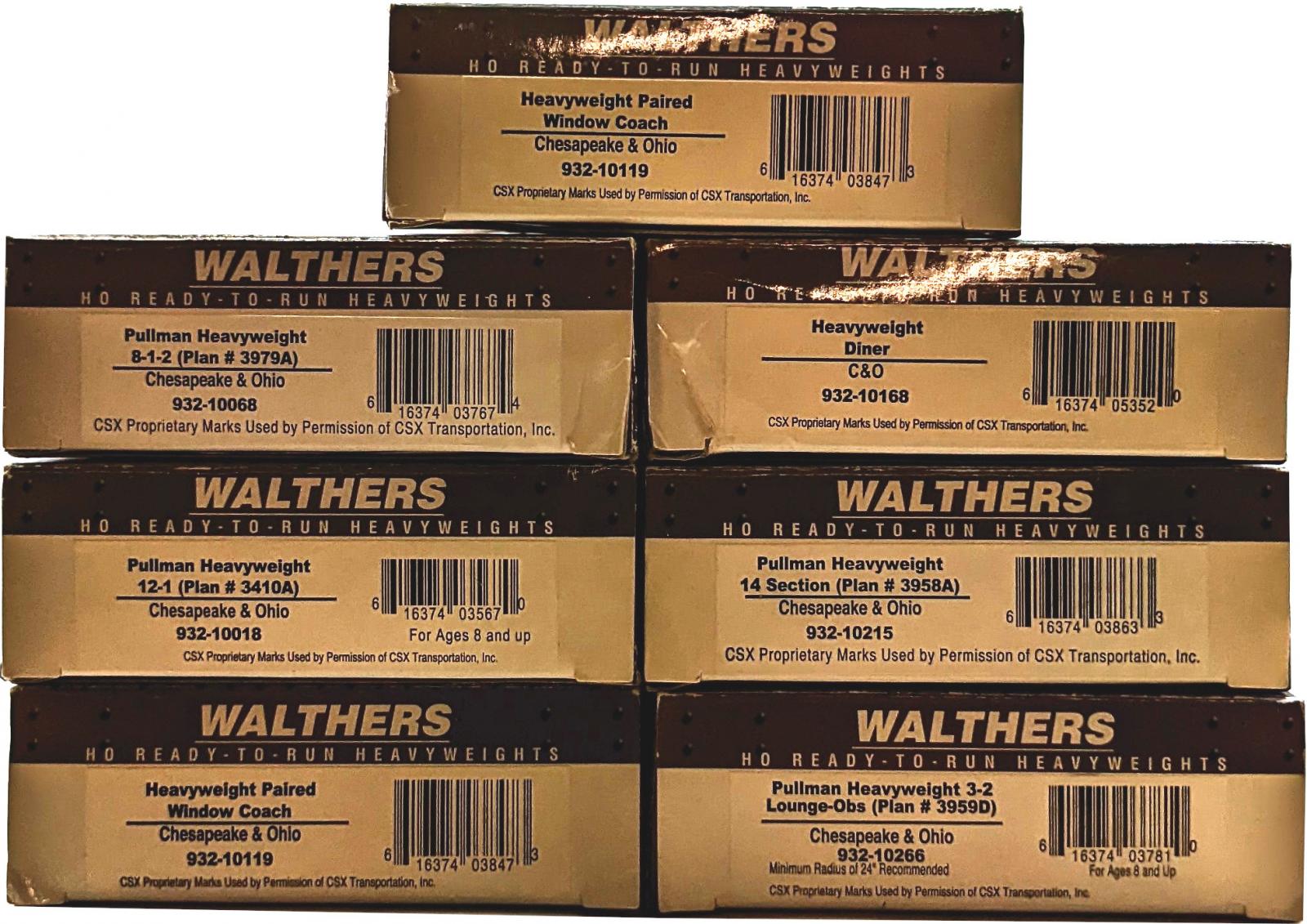 RAME COMPLETE DE 7 ELEMENTS VOITURES VOYAGEURS / FOURGON / VOITURE RESTAURANT CHESAPEAKE AND OHIO