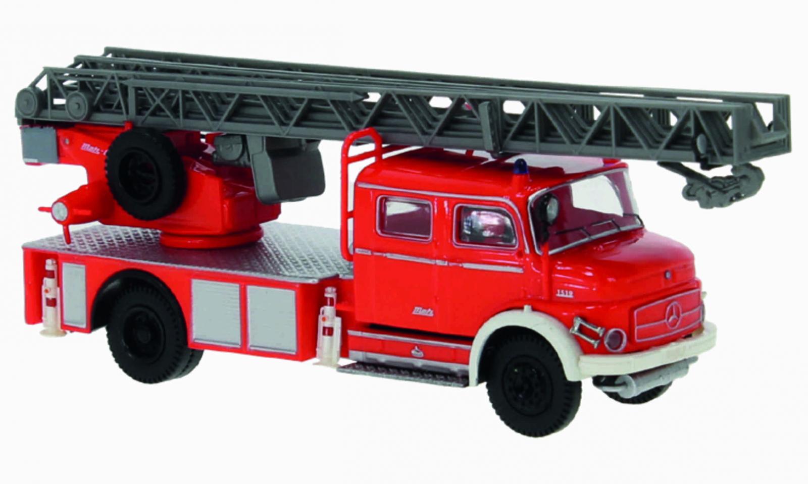 POMPIERS MB L1519 DLK30 À DOUBLE CABINE GRANDE ÉCHELLE ROUGE ET BLANC