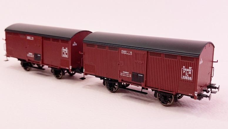 *PROMOS* - SET DE 2 WAGONS PRIMEURS 10 T PLM (FRISES BOIS VERTICALES) ROUGE SIDEROS, N° FA 33658 ET FA 33791, PLM