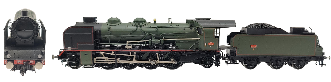 LOCOMOTIVE A VAPEUR MIKADO 141 E 545 DE LA SNCF AVEC SON TENDER 25 A 545 LIVREE VERTE AVEC PARE FUMEE NOIRE REF 067/2A