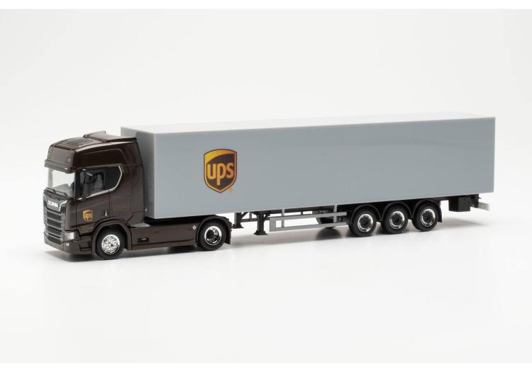 TRACTEUR SCANIA CR20 HD MARRON SEMI-REMORQUE CAISSE GRIS UPS