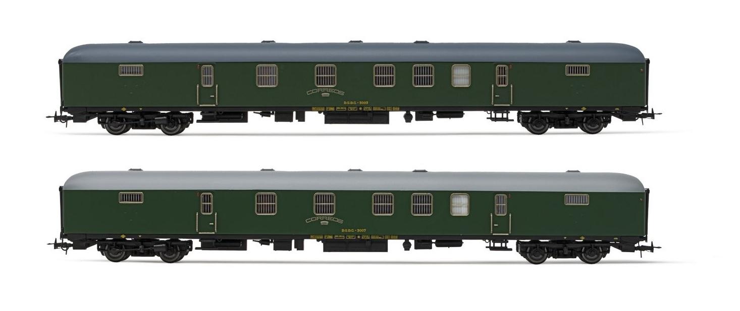 SET DE 2 FOURGONS POSTALES DGDC-3000 LIVREE VERT OLIVE RENFE