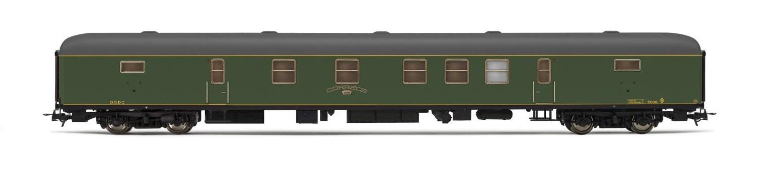 FOURGON POSTAL DGDC-3000 LIVREE VERTE AVEC BANDES JAUNES RENFE