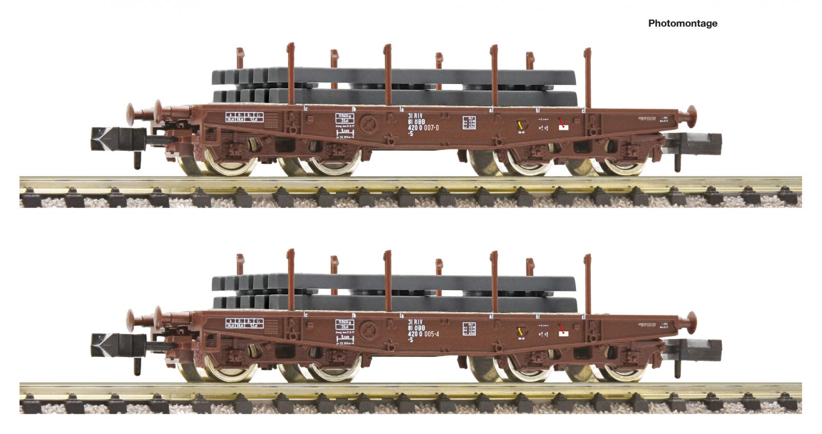 SET DE 2 WAGONS PLATS POUR LE TRANSPORT DE CHARGES LOURDES OBB
