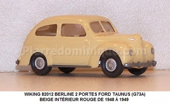 BERLINE 2 PORTES FORD TAUNUS (G73A) BEIGE INTÉRIEUR ROUGE DE 1948 À 1949