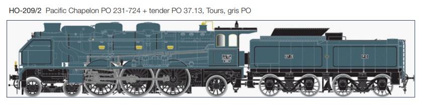 LOCOMOTIVE A VAPEUR PACIFIC CHAPELON PO 231-724 + TENDER PO 37.13, TOURS, GRIS PO - DIGITAL SOUND LOKSOUND - (A RESERVER )