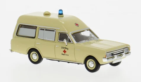 OPEL REKORD C CORBILLARD BEIGE AVEC GYROPHARE