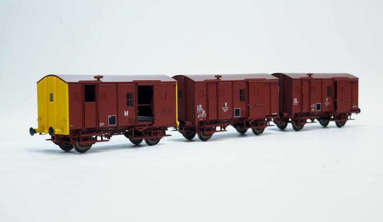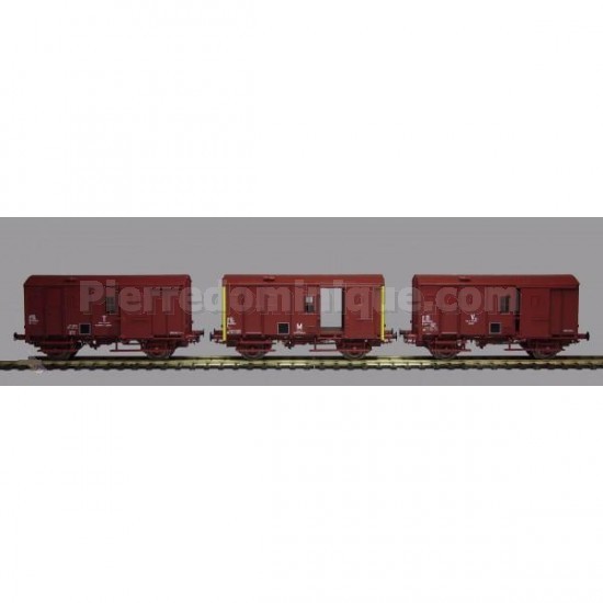 ENSEMBLE DE 3 FOURGONS US ROUGE UIC M, V, T SNCF - SANS FEUX DE FIN DE CONVOI