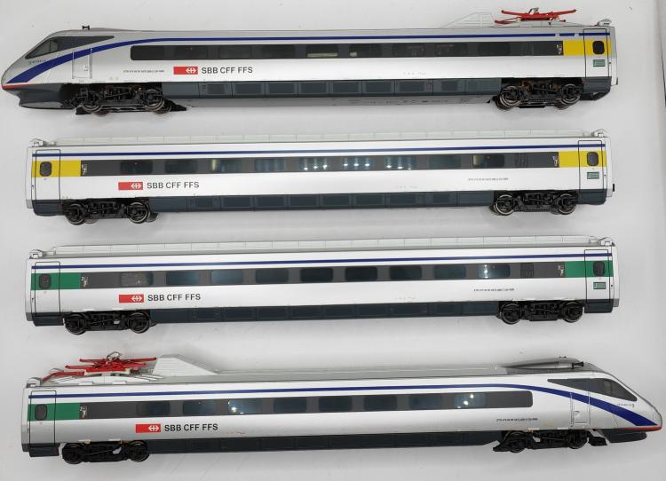 SET 4 PIECES SBB, ETR 470 LIVRÉE ARGENT AVEC BANDE BLEUE