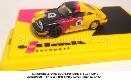 COUPÉ PORSCHE 911 CARRERA CUP 93 N°28 ÉCURIE FARNBACHER PILOTE FARMBACHER CIRCUIT HOCKENHEIMRING 1993 (BOITE CRISTAL)