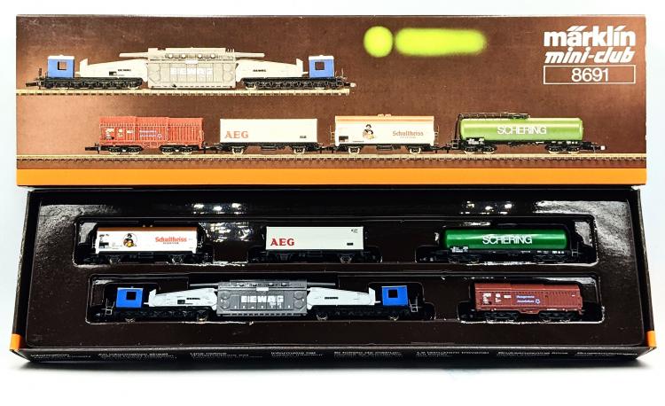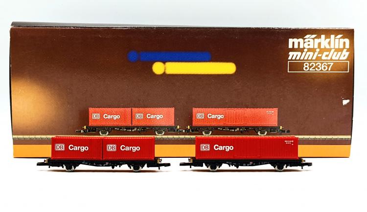 COFFRET DE WAGONS MARCHANDISES PLAT PORTE CONTENEURS DB CARGO MINI CLUB