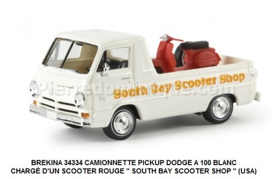 CAMIONNETTE PICKUP DODGE A 100 BLANC CHARGÉ D'UN SCOOTER ROUGE " SOUTH BAY SCOOTER SHOP " (USA)