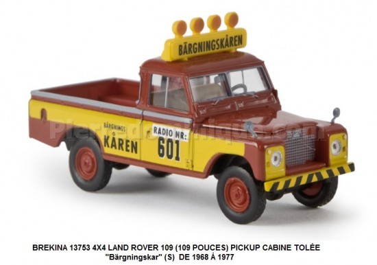 4X4 LAND ROVER 109 (109 POUCES) PICKUP CABINE TOLÉE Bärgningskar (S) DE 1968 À 1977