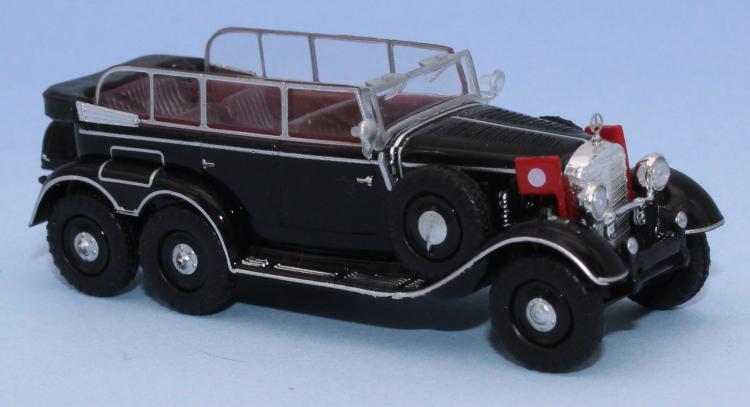MERCEDES G4 CABRIOLET NOIR AVEC DRAPEAUX 1938