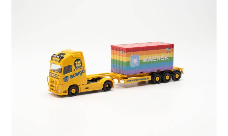TRACTEUR VOLVO FH GL XL 2020 ACARGO HAMBOURG AVEC CHASSIS PORTE CONTENEUR 1 20FT HAPAG LLOYD RAINBOW