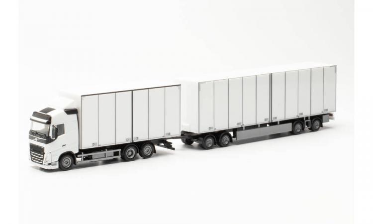 PORTEUR CAISSE VOLVO FH GL ET REMORQUE A 4 ESSIEUX BLANC COMBI SUEDOIS