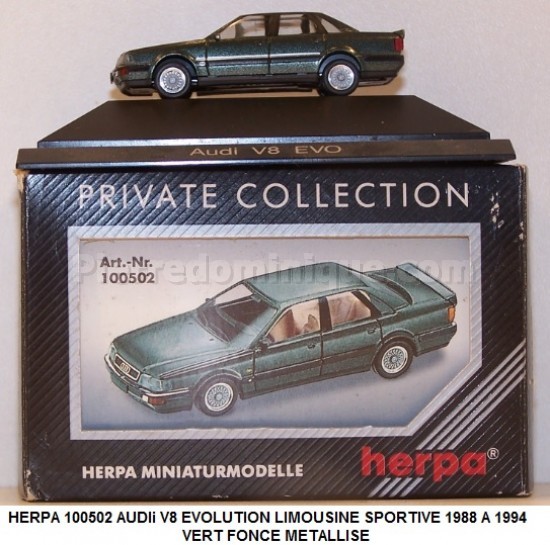 AUDI V8 EVOLUTION LIMOUSINE SPORTIVE VERT FONCE METALLISE DE 1988 A 1994